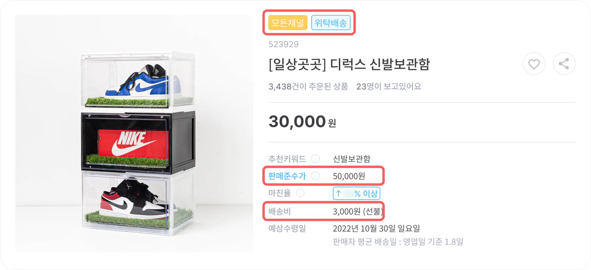 공급처에서 제공하는 상품 정보 페이지에서 상품명과 판매준수가와 배송비를 확인해주세요.